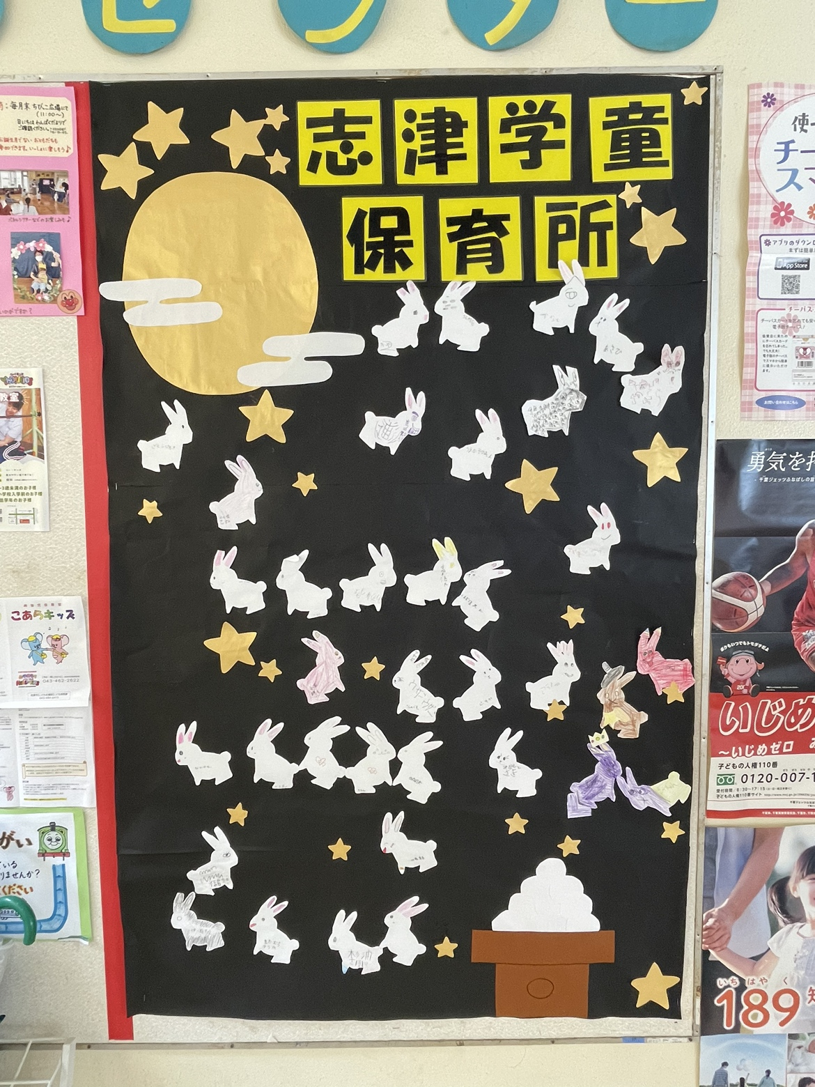 志津学童は、9月に北志津児童センターに飾る壁面制作の担当でした。