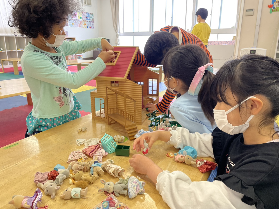 お部屋では、お人形遊びやラキュー・レゴでの作品作り、ドンジャラ、将棋、キャプテン・リノ(紙を積み上げるおもちゃ)など…