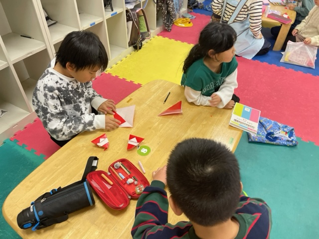 折り紙で、みんなでサンタさんを折りました!
