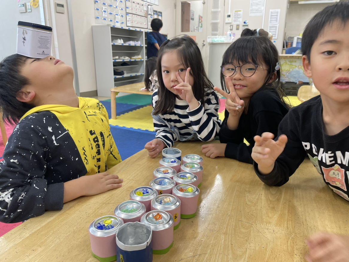 お部屋の中では、夏頃からマンカラが大ブームとなっています!子どもたちはみんな真剣におはじきを動かし、白熱した闘いを繰り広げています…!